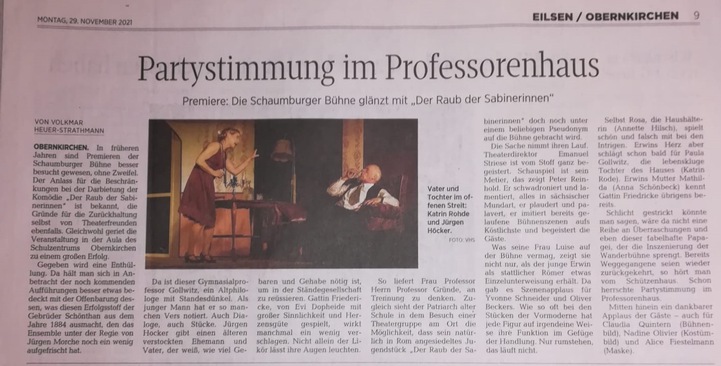 Schaumburger Bühne glänzt mit „Der Raub der Sabinerinnen“